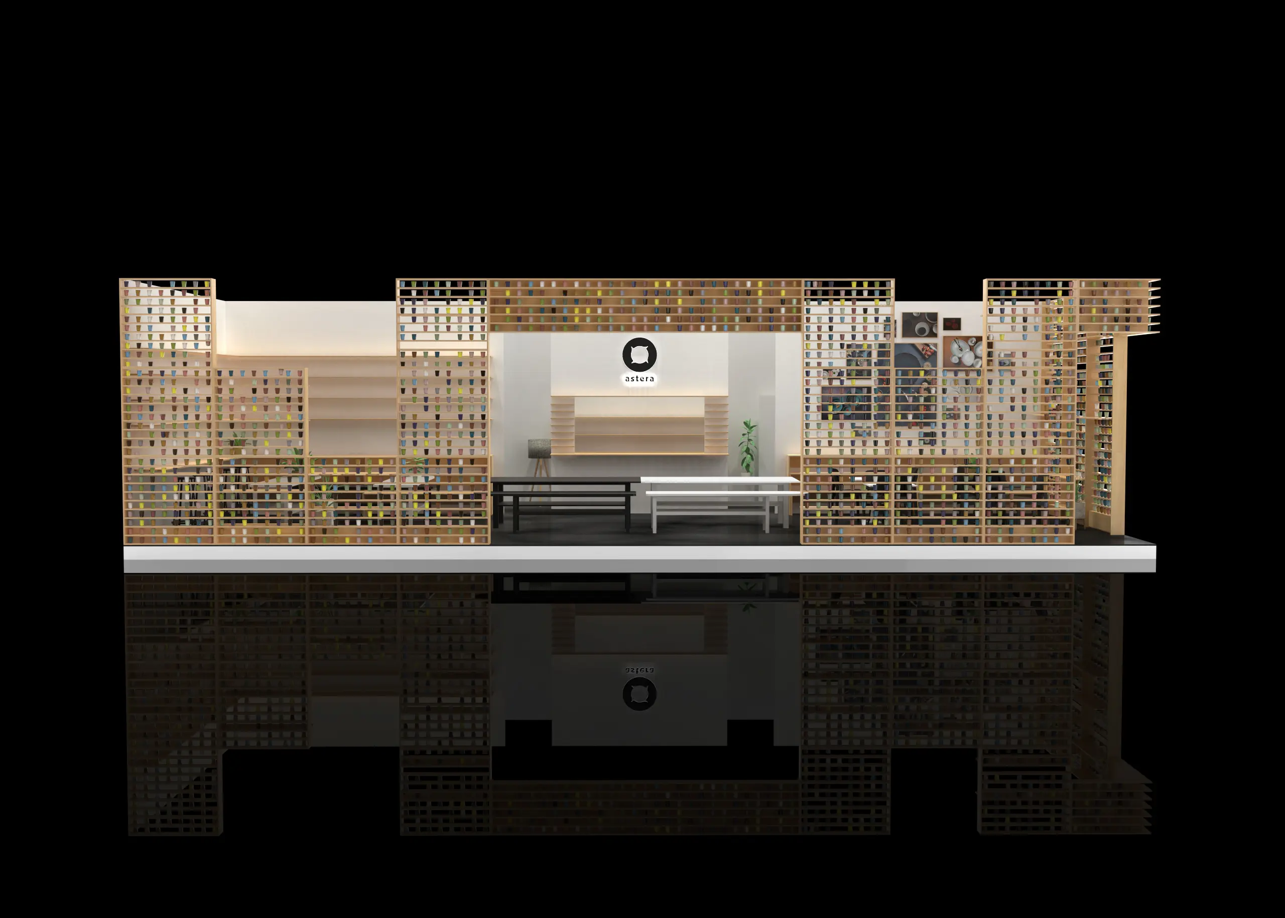 Our approach to this project was consistent with our philosophy: start with a pen and paper, translate ideas into models, and finalize with detailed renderings. This process ensures that every concept becomes tangible, and no detail is overlooked. The result was a stand that not only showcased Astera’s products but also created a memorable experience for visitors.