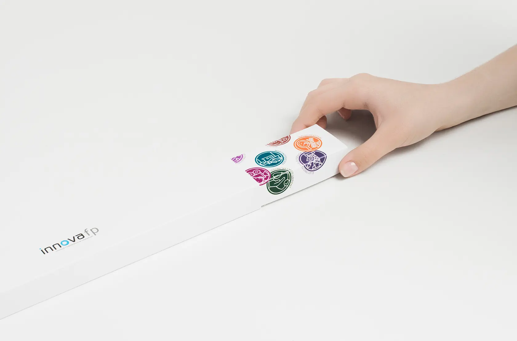 The final design achieves a perfect balance between style and substance, leaving a lasting impression on recipients and reflecting INNOVA FP’s unique approach to innovation and collaboration. This project highlights how thoughtful design can elevate even the smallest details into a powerful expression of a brand’s identity.