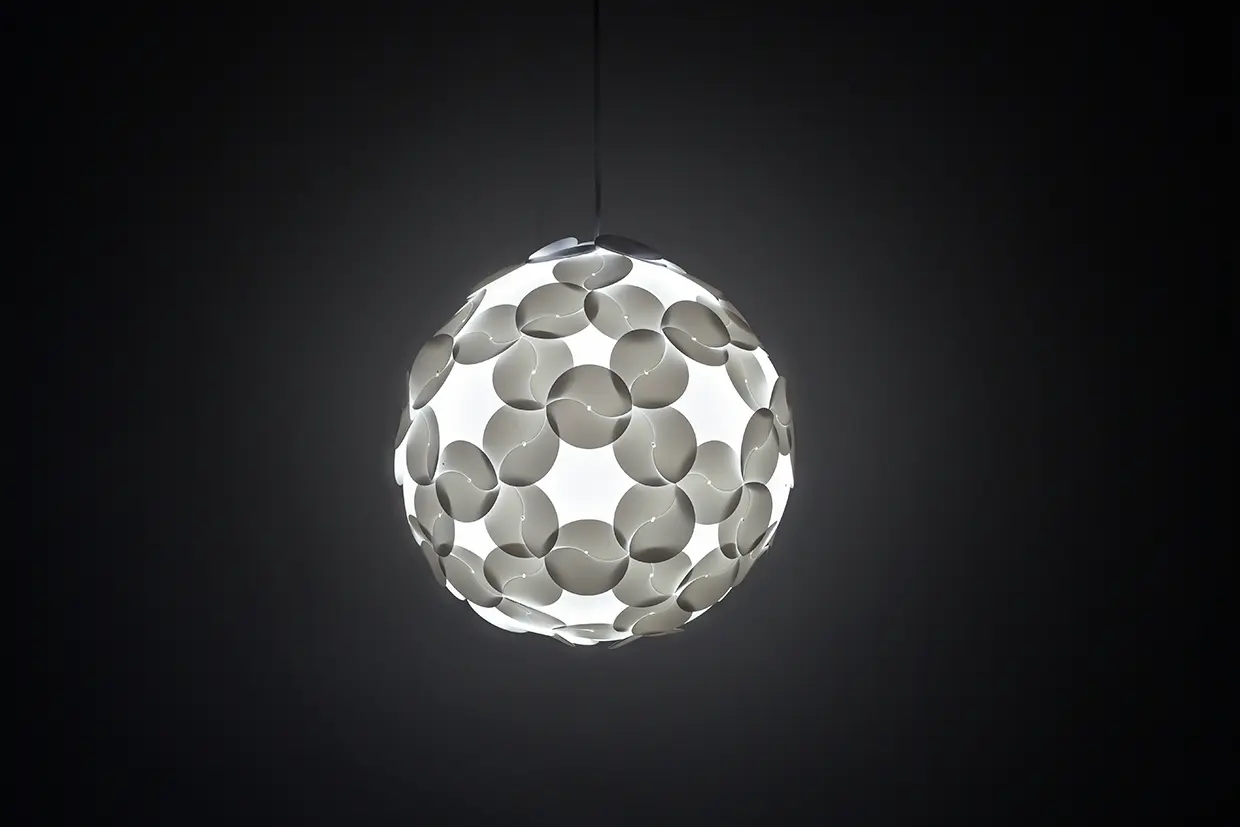 Installation is intuitive and hassle-free. Ego requires no supporting structure—each module hangs effortlessly from a steel cable or rod using the included fastening components. Whether you’re designing a decorative wall, a room divider, or a custom lampshade, Ego provides total freedom to express your creativity.