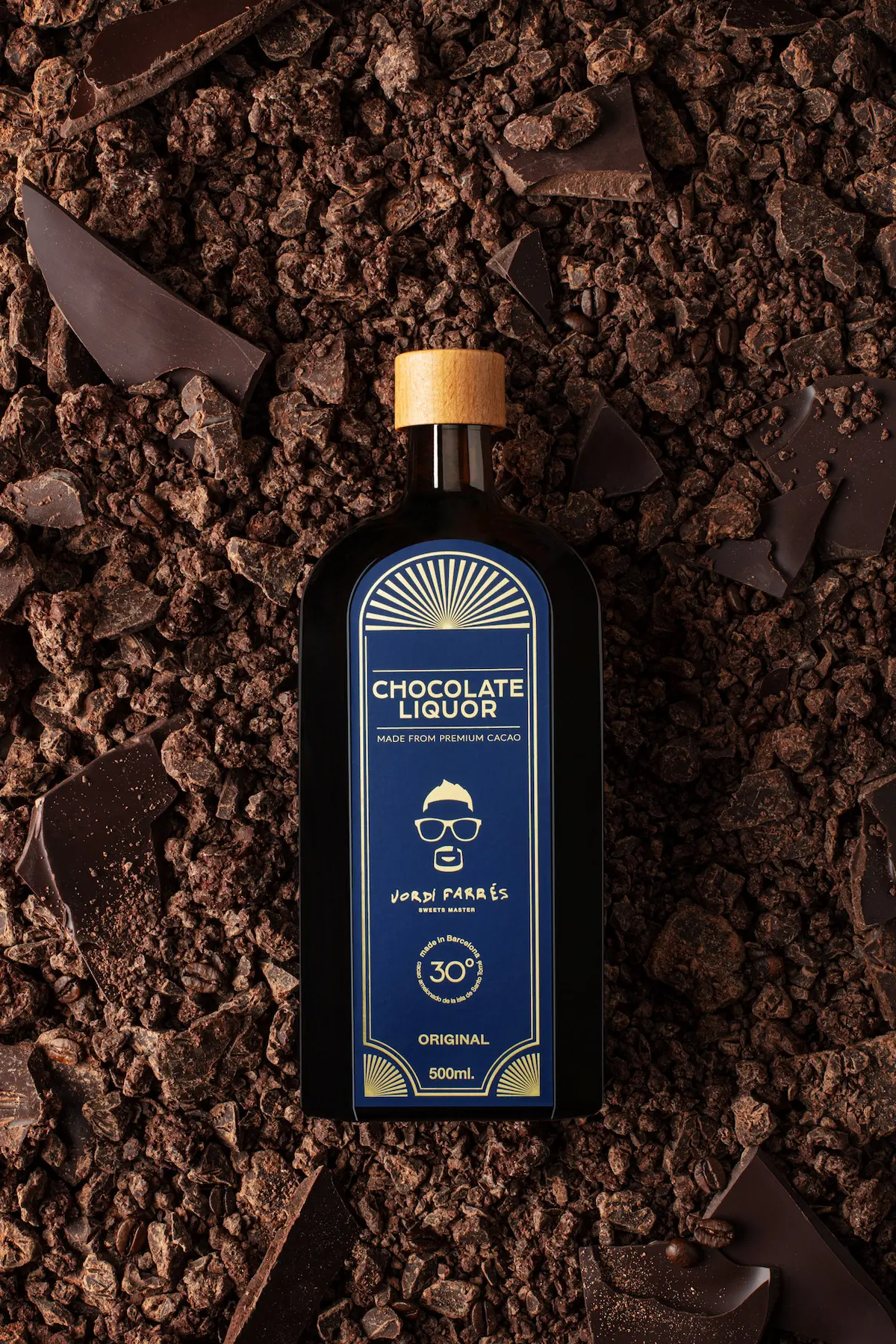 During the COVID-19 era, renowned Catalan chocolate master Jordi Farres approached us to design the branding for his first-ever chocolate liquor. This comprehensive project involved creating the packaging, an original label for the bottle, and a personalized business card that would embody his unique identity and artisanal spirit.